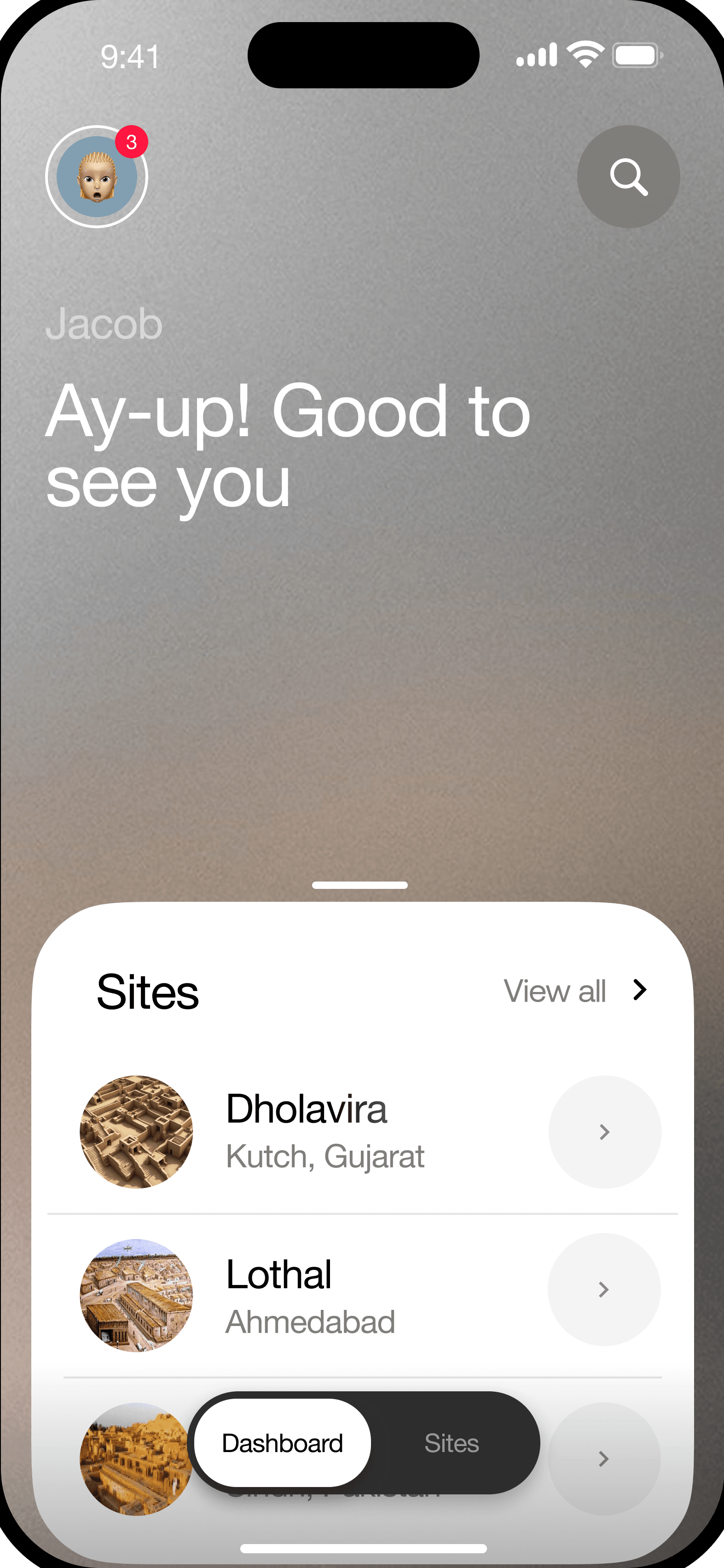 Begin your immersive journey through the Indus Valley Civilisation. On this screen, users are greeted with an interactive map showcasing different regions of the ancient civilisation. Select a specific area to explore, setting the stage for a captivating AR experience.