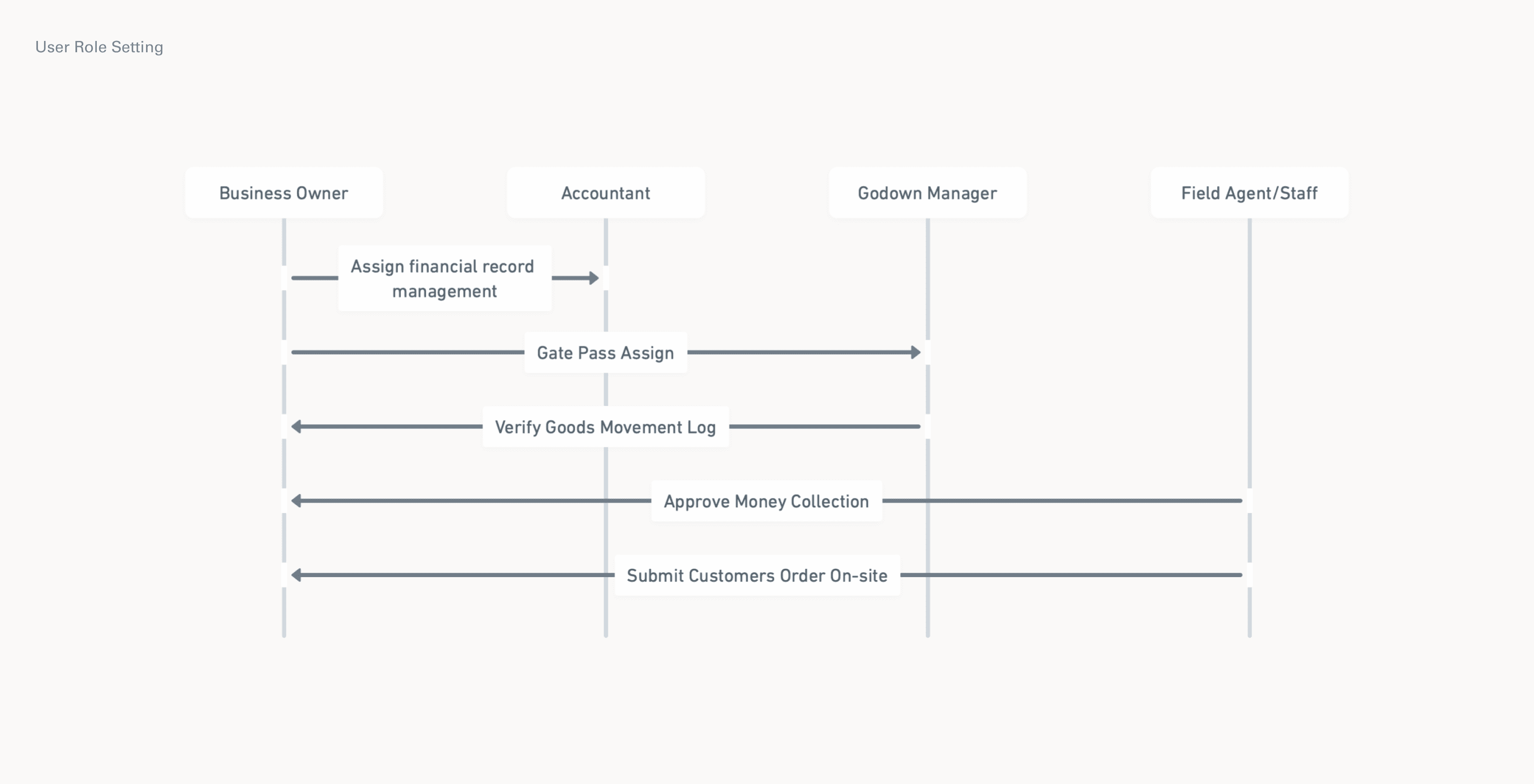 Different users do different tasks. Owners want full control, accountants manage numbers, field staff take orders and updates payment collection or debt collection, and godown managers logs loading and unloading of items. The system should show each person only what they need. No confusion, no extra buttons.